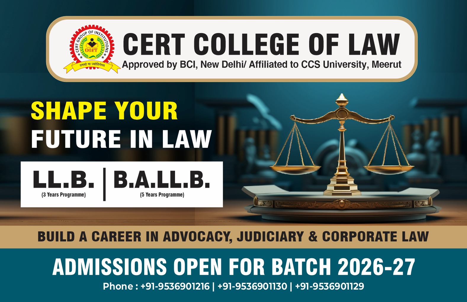 Start your legal career at CERT, a top law college in Meerut under AKTU. Get quality education, practical training, and strong placement support to succeed in the legal field.