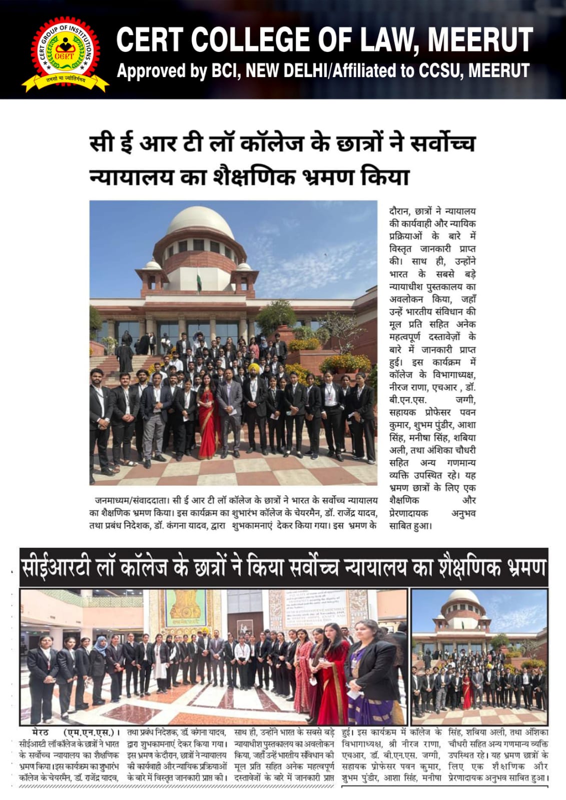 CERT College of Law is regarded as one of the Best Law College in the NCR. Beginning with a three-year LL.B. programme, CERT College of Law was established in 2017.