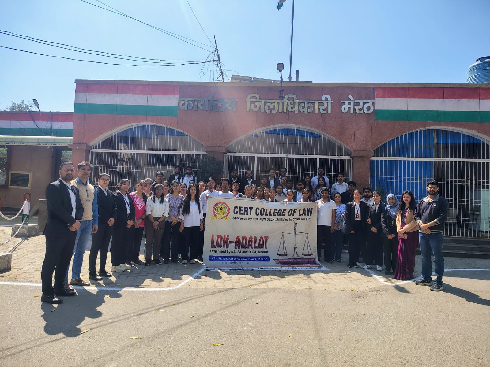 CERT College of Law recently organized an enriching visit to the Lok Adalat, providing students with a hands-on experience of the judicial process and the importance of Alternative Dispute Resolution (ADR). The visit was graced by the presence of Dr. Rajendra Yadav, Chairman (CERT and Shree Ram Group of Institutions), Dr. Kangna Yadav, MD (CERT and Shree Ram Group of Institutions), and Mr. Neeraj Kumar Rana, Head of the Department, CERT College of Law. Faculty members, including Mr. Pawan Kumar, Ms. Manisha Singh, Ms. Asha Singh, Ms. Shabiya Ali, and Ms. Anshika Choudhary, also accompanied the students, ensuring a valuable learning experience.